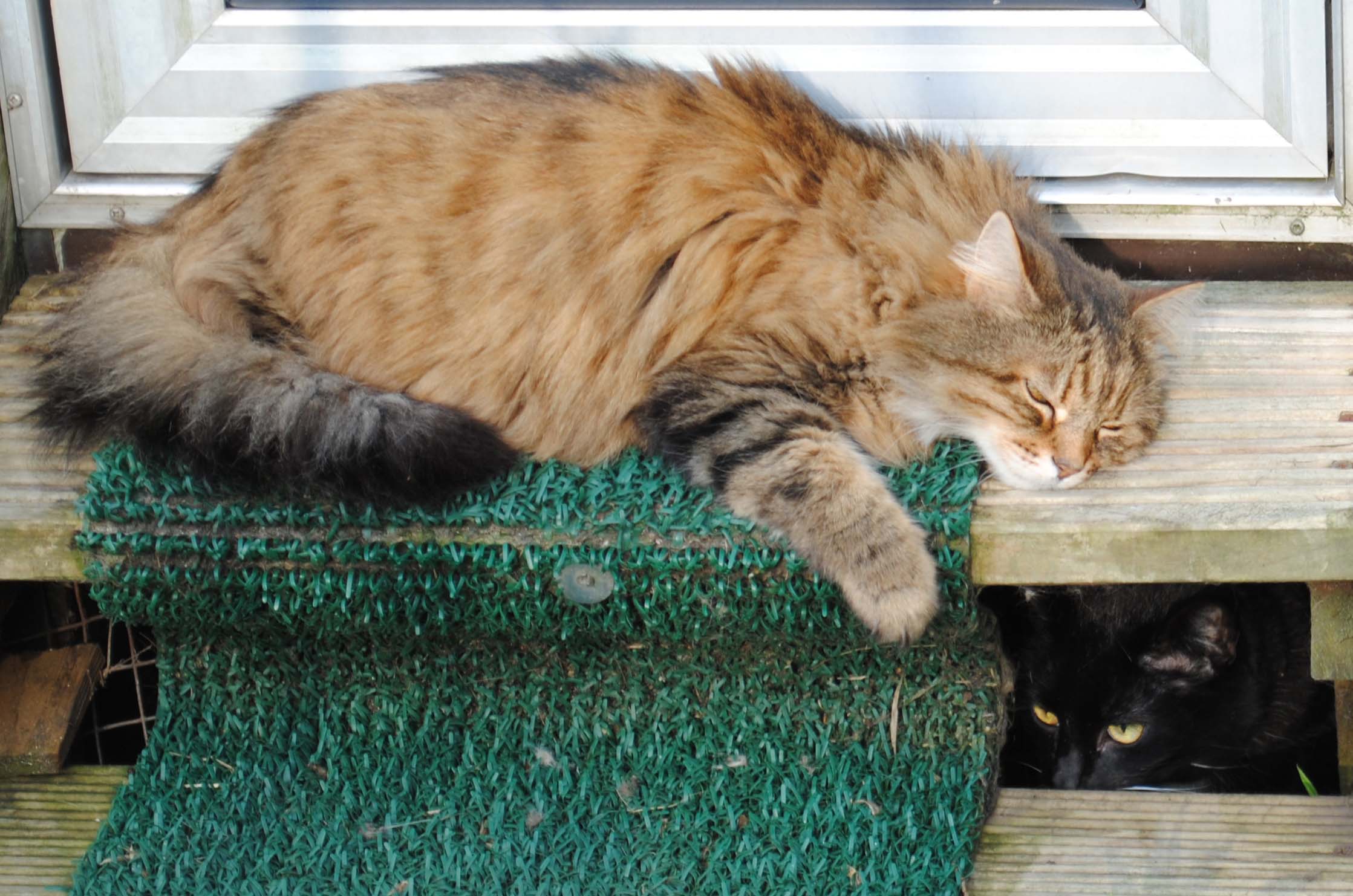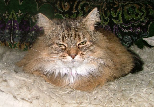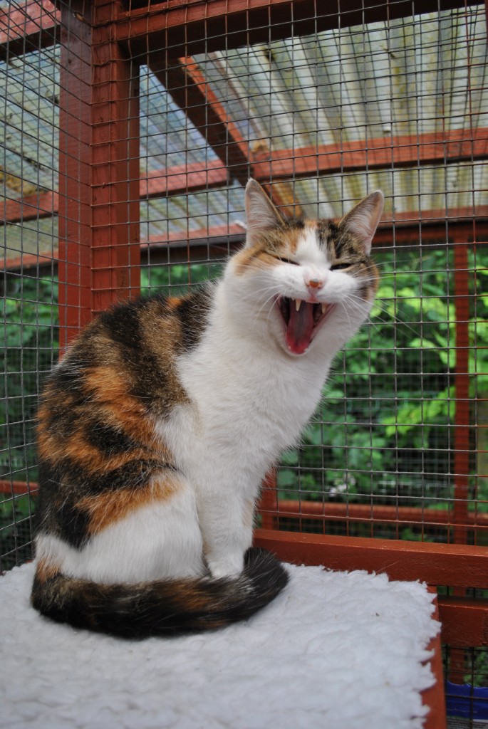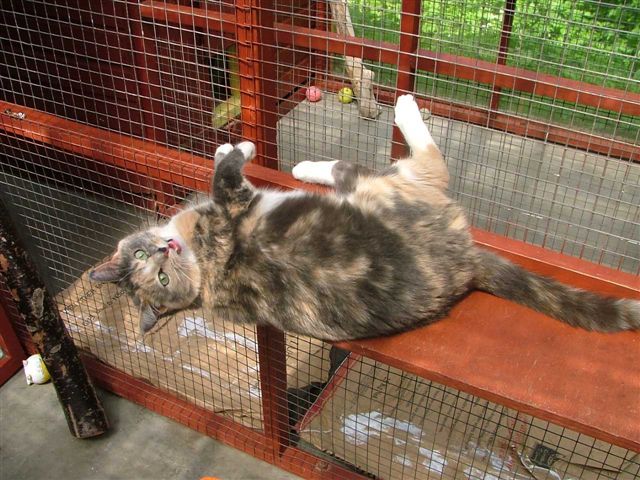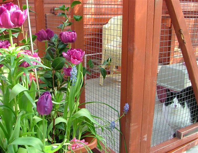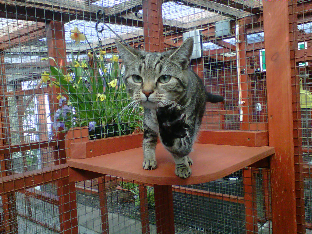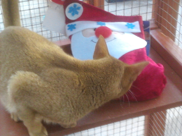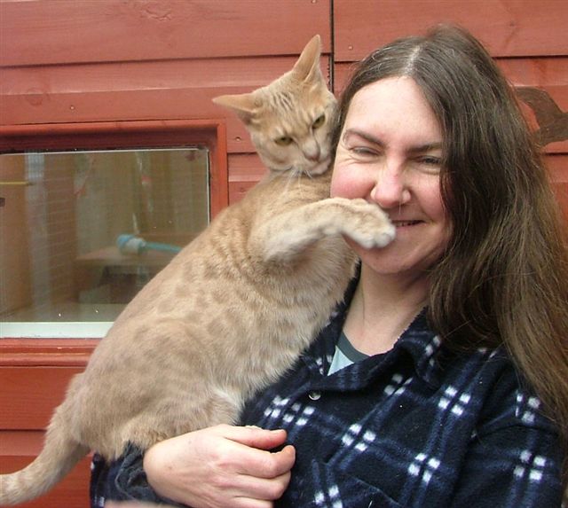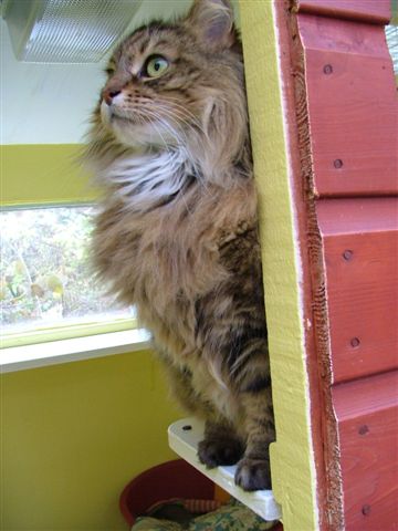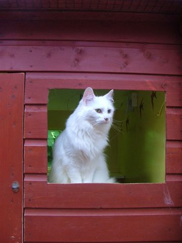 While Cassie sleeps, Badger creeps up below her handsome Pushkin Jaime and Merlin make friends Badger loves kisses Tootz Huggy the cute Stewart the astute, so missed Simba watches from on high She was a boarder, now resident quality control manager Evie was a very sweet rescue cat It takes all sorts, yes he is a rabbit! sometimes Honey looks more like an otter than a cat Mr Angus Pushkin playing Rascally Rasputin Georgeous Coat renewal and repainting of timber is a constant job, more easily done in quiet months Misty’s babies Cassie Lily Summer time Spring time and Alfie Interior, smallest chalet size Christmas stockings hung Max wants his pressie Coco wakes up Rasputin new flower bed and ramp to cattery Badger Angus Lily Simba the old steps Stewart apple arch Toots and Sheila