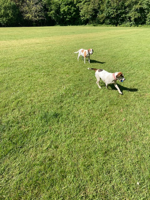 Maddy met her litter brother in the park just before he left for Italy. Knew we would meet one of her siblings one day. He wouldn’t play so won’t be missed by her. Marlena got through the assessment hoops to become a therapy dog with Therapy Dogs Nationwide. She has her uniform as do I, only issue being we haven’t yet found anywhere for her to do her cuddle work as people don’t get back to us despite us volunteering so its free!